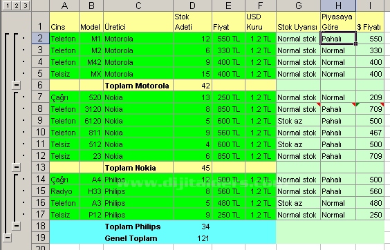 Formül kullanmadan 4 işlemler yardımı ile yapılabilen tablolar